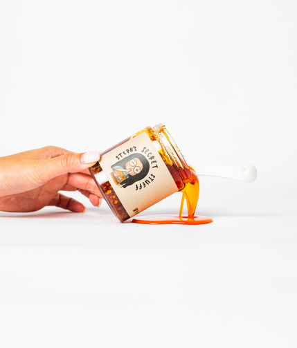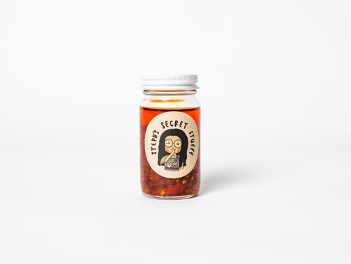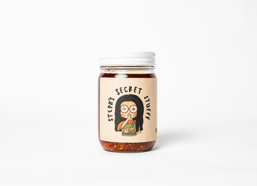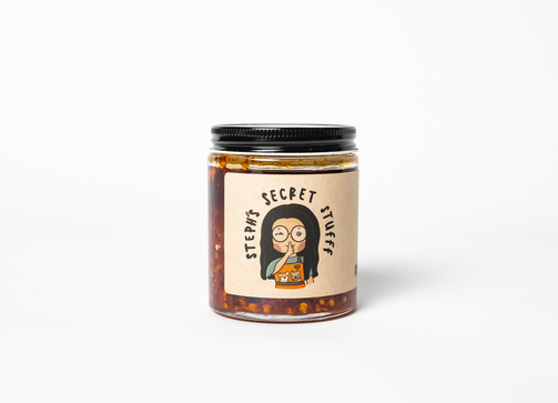 coming up with a name for your brand is never easy...at least it wasn't for me. but thanks to the spontaneous outburst of my roommate (aka significant other) while we were in the kitchen pouring fresh chili oil into jars, steph's secret stufff was named.